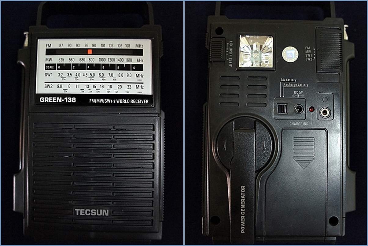 ตัวเเรกเป็นวิทยุ tecsun green 138 มือสอง ตัวนี้มาตรฐาน tecsun รับคลื่นชัด เเถมไม่ต้องใช้เเบตสามารถปั่นไฟได้เอง มีไฟฉายส่องสว่างตัวเดียวเที่ยวทั่วไทยได้เลย ขายราคา 1000 บาท สนใจติดต่อ พัน 0891681156 ครับ