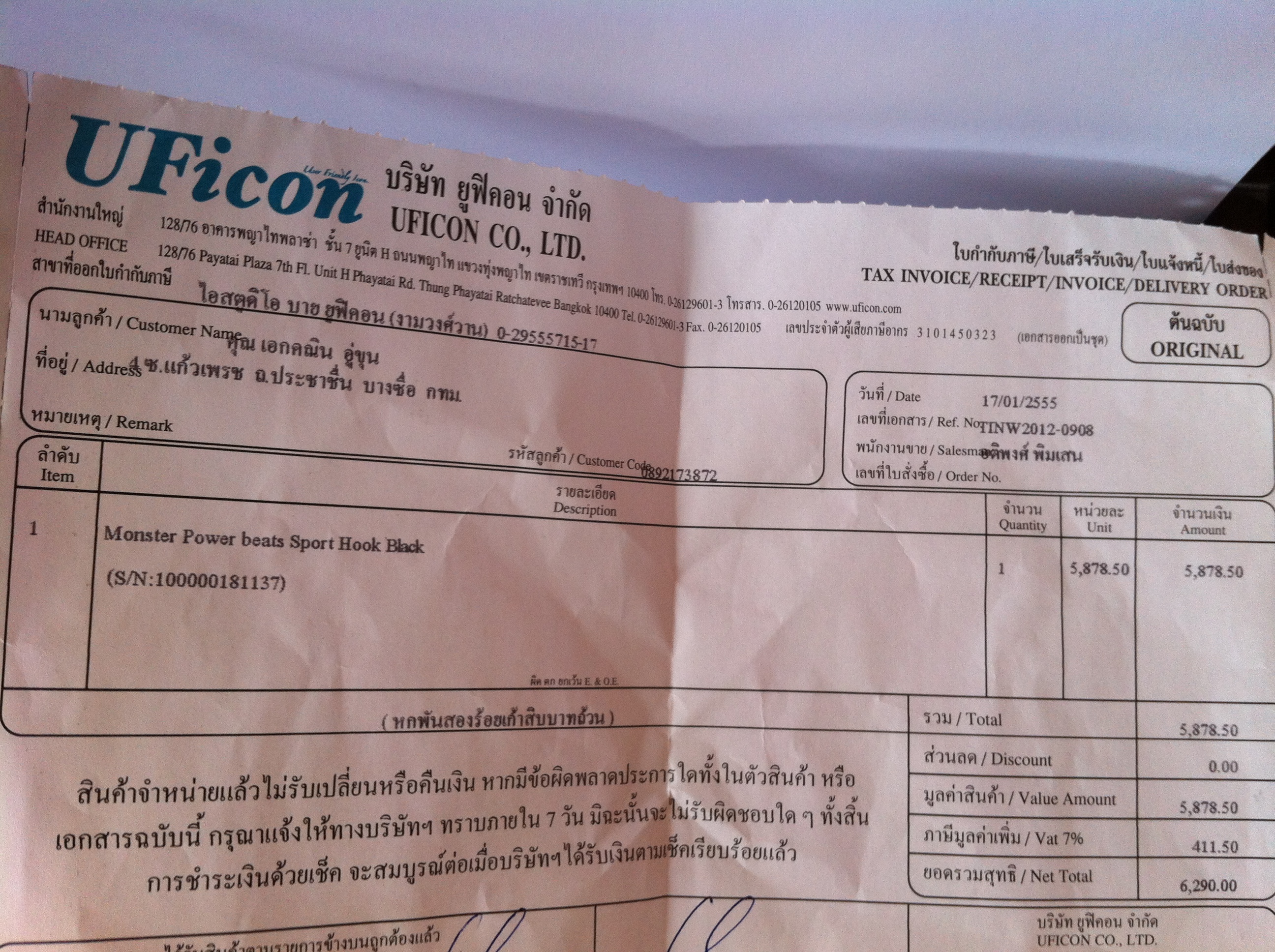 ขาย หูฟัง power beats by dr. dre [หูฟังสำหรับฟิตเนต เล่นกีฬาและอื่นๆ] สภาพ99% มีประกัน 1 ปี พึ่งซื้อเมื่อวันที่ 17/01/2555