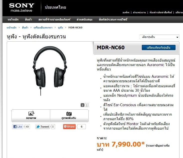 ขอเปิดขายหูฟังโซนี่แท้ๆ SONY MDR-NC60 หูฟังตัดเสียงรบกวน มือสอง