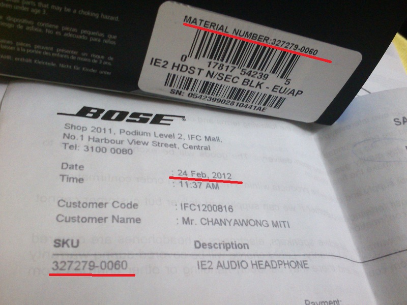 ซื้อจากช็อปที่ ฮ่องกง วันที่ 24 กุมภา..2012 รับมาวันที่ 28