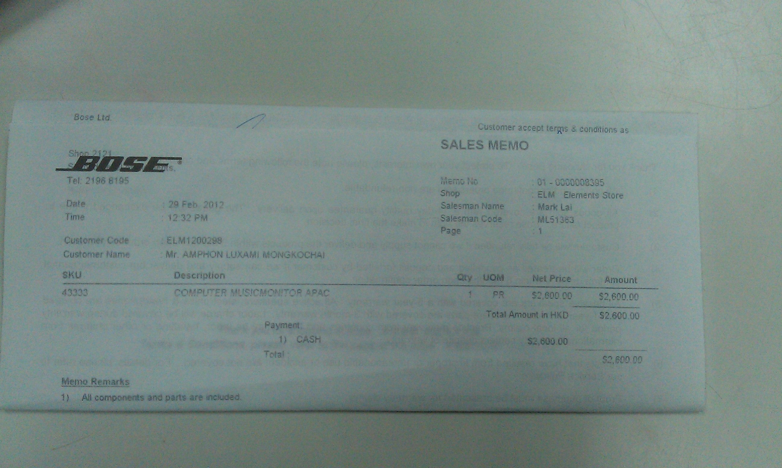 ซื้อมือ 1 เพิ่งแกะกล่อง วันที่ 12 เม.ย.ที่ผ่านมาครับ เป็นของจากศูนย์ฮ่องกงนะครับ แต่มีใบเสร็จสามารถเข้าศูนย์ไทยได้ครับ ซื้อมาเมื่อวันที่ 12 เม.ย.55 ที่ผ่านมาครับ เพิ่งฟังได้ครั้งสองครั้ง ซื้อมา 13,500 บาท