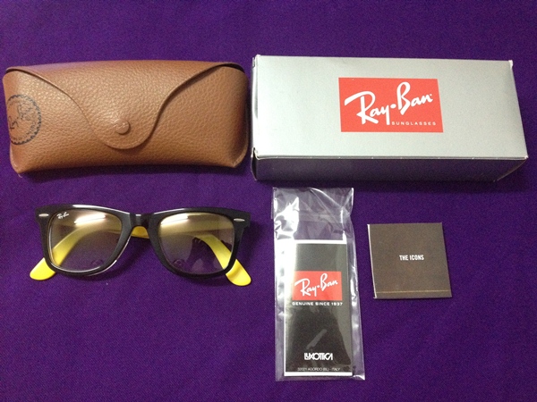 เเว่นตา Rayban wayfarer size50 ทูโทน เหลืองดำครับ ประกันเหลืออีก 5เดือนครับ