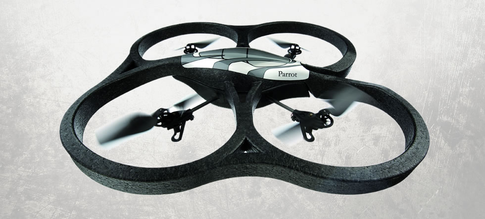 AR.Drone นอกจากจะบินได้ด้วยใบพัด 4 ใบซึ่งมีความเสถียรสุด ๆ เมื่อเทียบกับแบบที่เราเห็นแบบใบพัด 2 ใบ จุดเด่นคือจะมีกล้องติดที่ตัวเคร้่องด้วย ซึ่งในวง Wireless เดียวกันสามารถใช้ App ที่เป็นทั้ง iPhone และ Android ควบคุมได้ และที่สำคัญ จะมองเห็นภาพวิดีโอ stream จากตัวเครื่องลงมาที่ตัวมือถือด้วย?