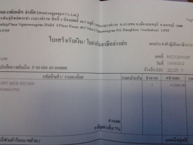 ขออนุญาตเฮียปล่อย Sony MDR-Ex 1000 สภาพ 95+ ไม่มีรอย(ใหม่จริงๆ) อุปกรณ์ไม่ได้ใช้ ใบเสร็จร้านมั่นคง ประกันยังเหลืออีก 3 เดือนเกือบ 4 เดือน (ตัวนี้ประกัน 6 เดือน) ขอตั้งราคาที่ 9600 ครับ :'D