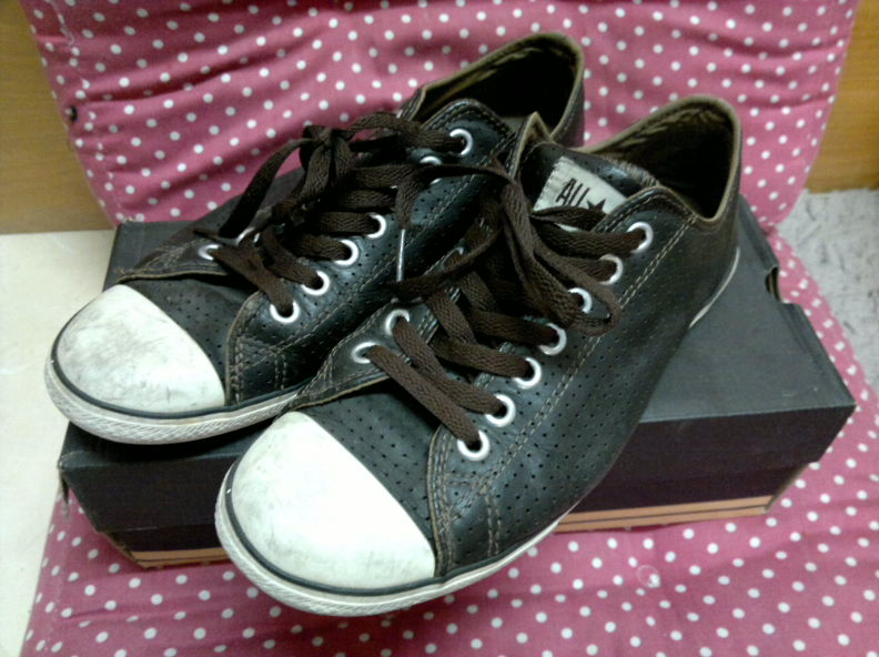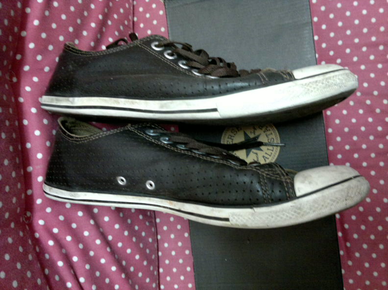 รายการแรก รองเท้าคอนเวิร์ส หนังมีรูๆ สีน้ำตาล เบอร์ 42 ไทยครับ