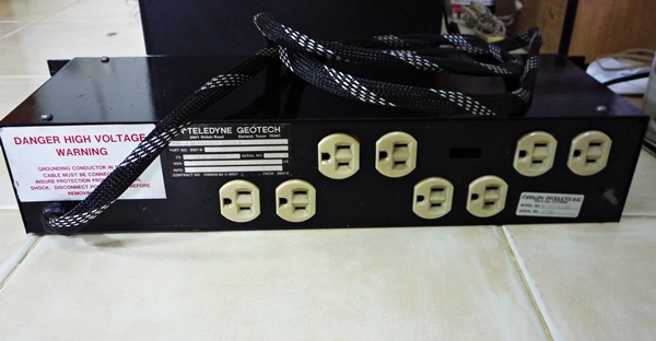 เครื่องกรองไฟ TELEDYNE GEOTECH ของ เมกา ขนาดเท่าๆเครื่องเสียงทั่วๆไป ตัวนี้มีเต้ารับด้านหน้า 1 หลัง4 ครับ ปรกติใช้ฟังกับปรีหลอด เอาไปใช้แทนปลั๊กไฟก็คุ้มครับ