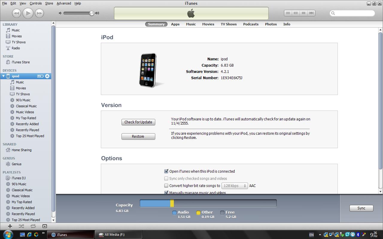 1.iPod Touch gen2 ความจุ 8 GB การใช้งานปกติ ไม่ได้ Jail นะครับ