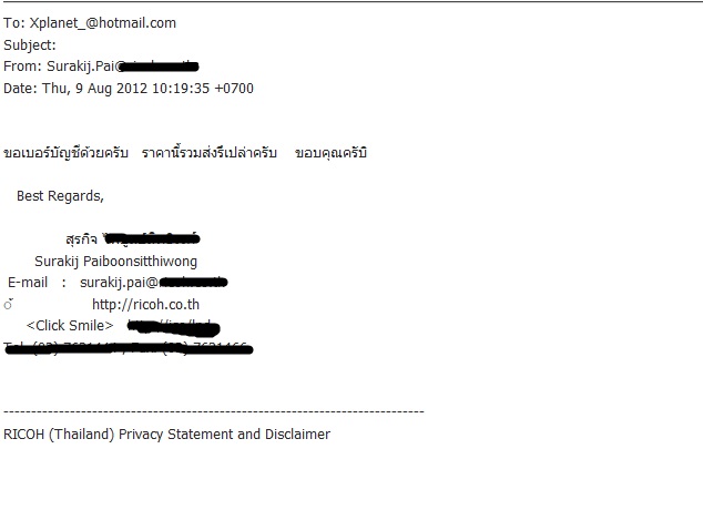 บางทีผมติดงานไม่สามารถรับโทรศัพท์ได้ครับ ติดต่อทางเมลจะได้ไม่พลาด