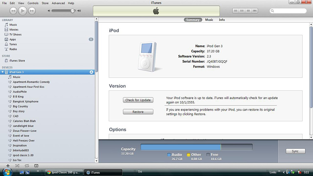 2. Ipod gen 3 รุ่น 40 g สภาพใช้งาน ใช้งานได้ตามปกติ หน้าจอมีรอย ตามรูป มี adepter และ สายซิ้งค์ ขาย 1900 บาท