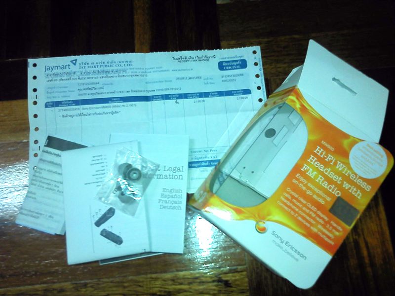 ตัวนี้ผมซื้อมาจากร้าน Jaymart เซ็นทรัลพระราม 9 มีใบเสร็จรับประกันเรียบร้อย ลงวันที่ 3/2/2012 อุปกรณ์ทุกอย่างอยู่ครบกล่อง จุกหูฟังสำรองครบถ้วน