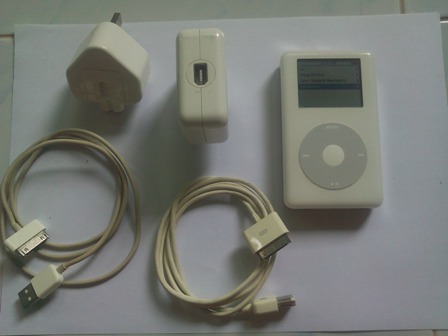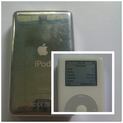 gen4 color 60g ข้างหน้าสวยงายข้างหลังมีรอยขนแมวบ้าง แบตอยู่ได้ 8-9 ชม.ฮาร์ดดิสไม่แบด ลงไทยแล้ว ชีเลียวตรงฝาหลัง ขายพร้อม Adaptor Firewire แท้ ขายที่ราคา 3600 ฟรีems