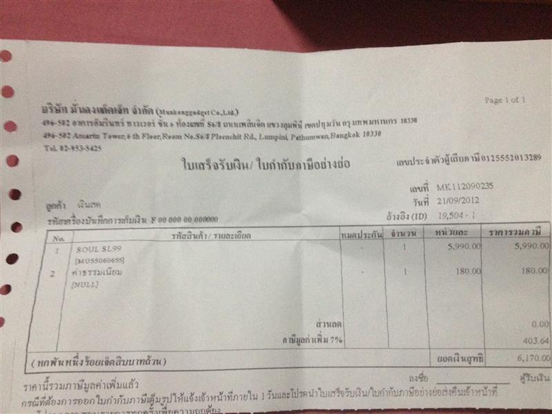 ใบเสร็จ ที่ซื้อมา ประกันร้าน 1 ปี เหลือเพียบ
