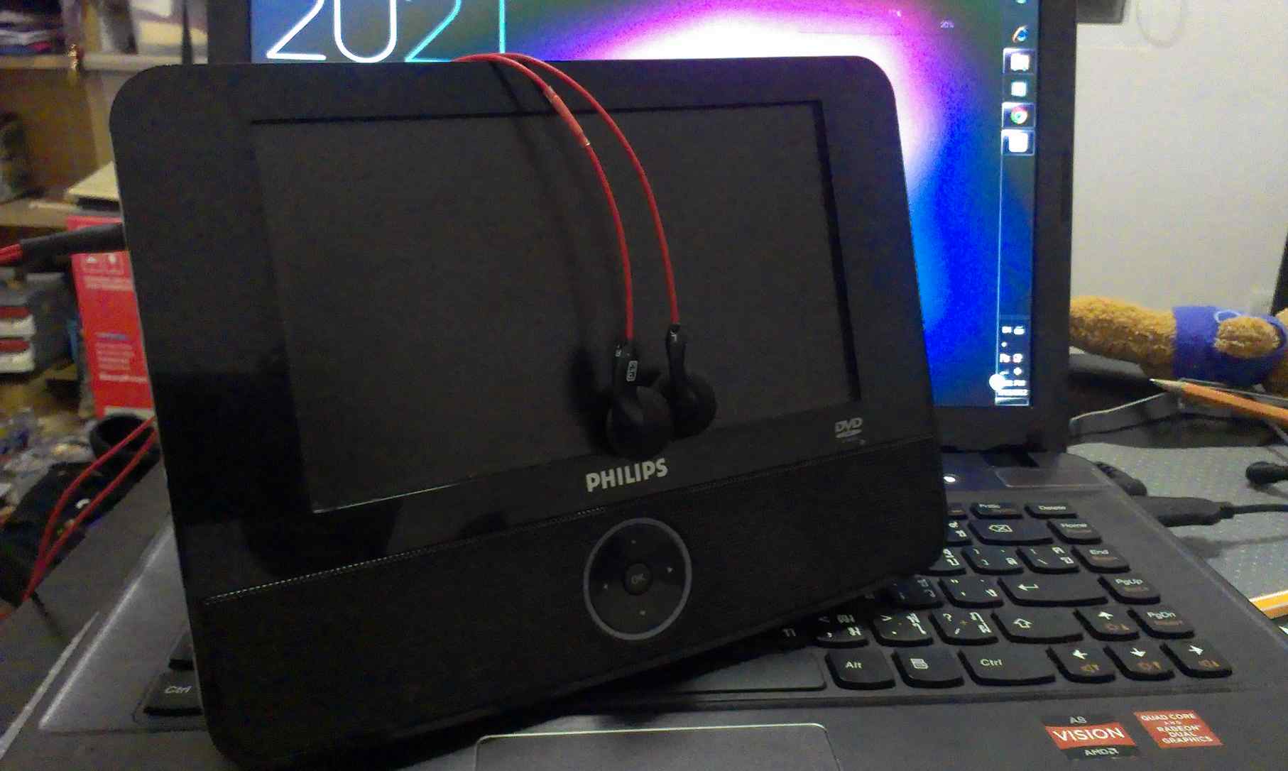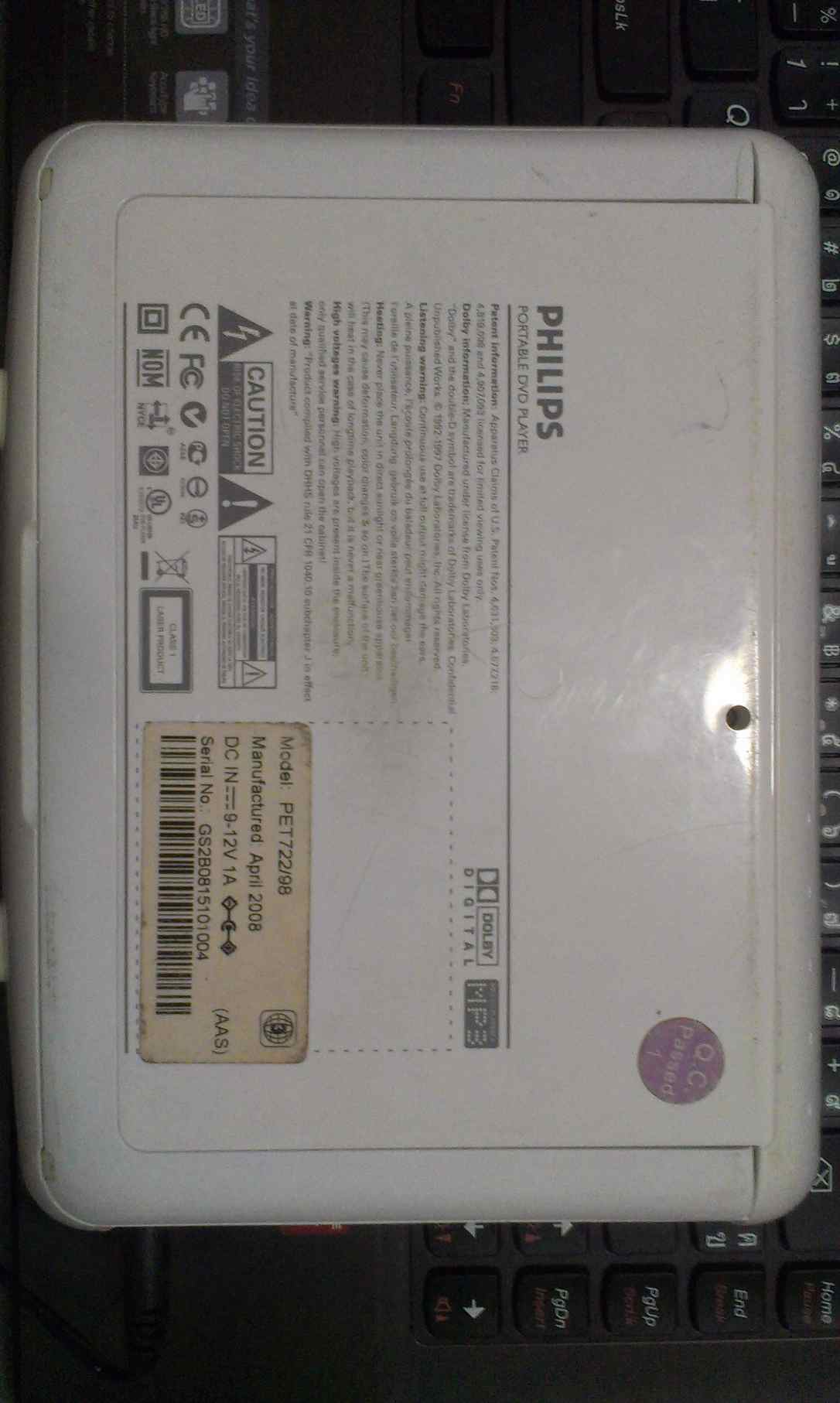 เป็น portable dvd อายุจำไม่ได้ ประกันไม่มี ประกันใจให้ 7 วัน สภาพภายนอก 80% แต่การใช้งานเกือบร้อย สามารถต่อ outไปเข้า tv ได้ มีช่องเสีบยหูฟัง มี adaterชาร์จ ไฟบ้าน+ในรถให้ แบตอยู่ได้ประมานหนัง เกือบ 2 เรื่อง ข้อมูลเพิ่มเติม ตามนี้เลยครับ http://www.p4c.philips.com/cgi-bin/dcbint/cpindex.pl?slg=th&scy=th&ctn=PET722/98