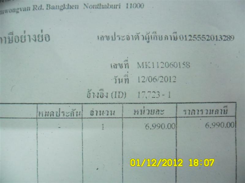 ได้หรือยังครับ ถ้ายังพรุ่งนี้ผมส่งรูปให้ชมครับ รับมาจากพี่สมมาตร ยังมีประกันอยู่ครับ สภาพยังแจ่ม