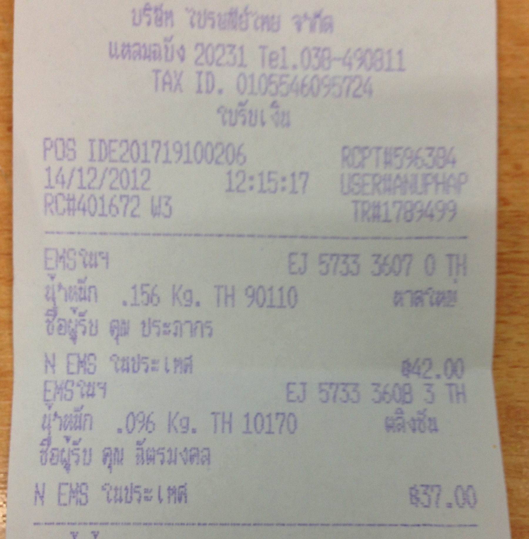 PK2 สายคู่ ส่งแล้วครับ EJ573334330TH ขอบคุณครับ