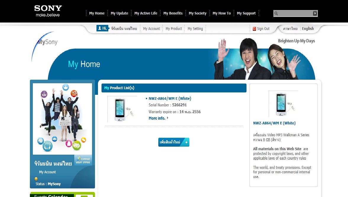 2. Sony A864 8GB ศูนย์ โซนี่ไทย อายุ 4 เดือน ประกันหมด พย. 56 (ลงทะเบียน online ได้ประกันเพิ่มอีก 3 เดือน 4,400 บาท