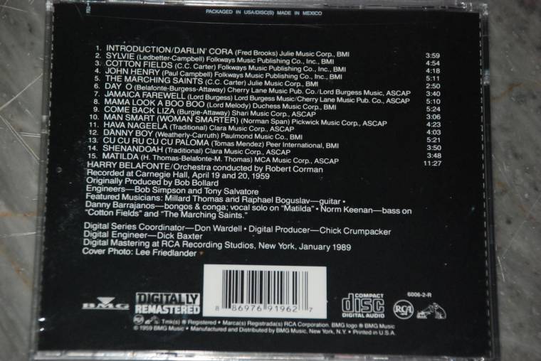 1. CD AUDIOPHILE - HARRY BELAFONTE ชุด BELAFONTE AT CARNEGIE HALL เป็นของใหม่ MADE IN USA ราคา 500 บาท