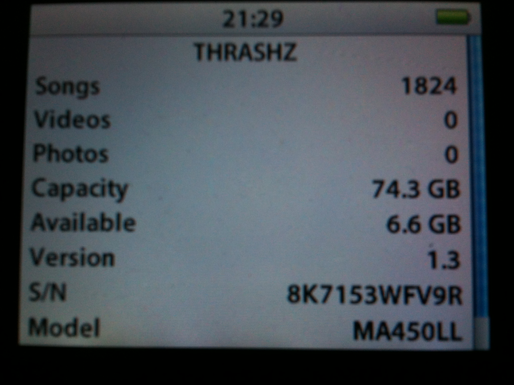 ipod 5.5 80gb ฝาหลังผ่านสงครามโลกรอยเพียบ จอมีเดธ(ถ้าเปิดด้วยแสงไฟสีขาวจะมองไม่เห็นแต่ไม่เยอะมาก) ติดแบดเพียบ แต่ลงเพลงได้ปกติ รู้สึกตั้งแต่ 65gb ขึ้นไปเพลงเริ่มเ้พี้ยนๆ แบตยังอึดอยู่ เคยลองเปิดไฟล์ aiff นานติดต่อกัน9-10 ชั่วโมง ขอขายราคา 2800 ครับ (แถมเคสยี่ห้อ speckไปครับ)
