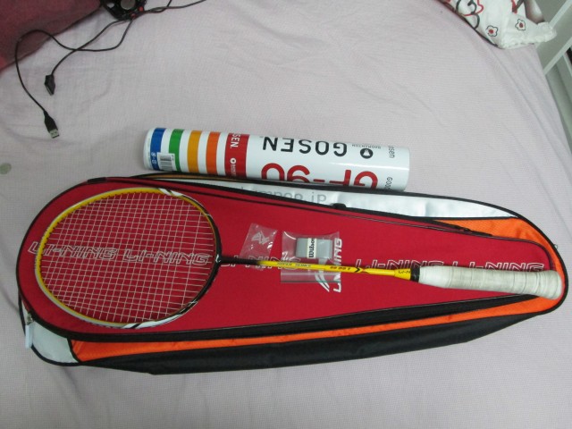 - ไม้ Lining Super Series 68II น้ำหนักไปทางหัวไม้ครับ เอาไว้ช่วยในการตบ เน้นไปทางแนวบุก รวมเอ็น + พันด้าม ซื้อมารวมก็ 1390 ครับ แต่มันมีตำหนิอยู่ 3-4จุดได้ ขายที่ 800 ครับ ให้ยางพันด้ามของ Willson ไปด้วยอันนึง(อันเกือบร้อยแน่ะ -..-)