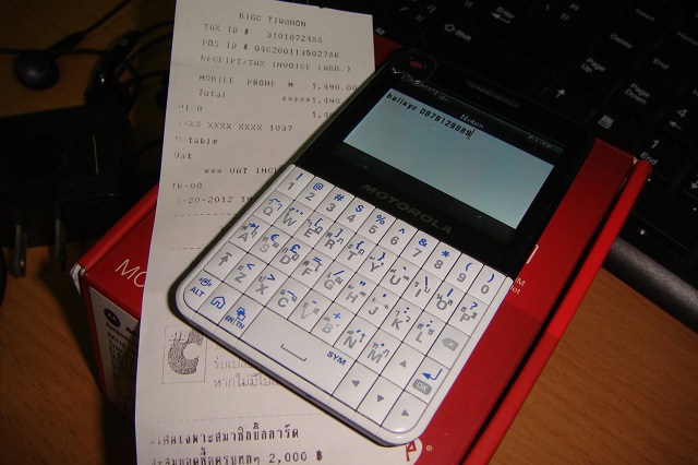 Motorola EX119 ครบกล่อง ซื้อจาก Big C เมื่อ 20 มี.ค.55 ราคาตามใบเสร็จ 1,490 บาท