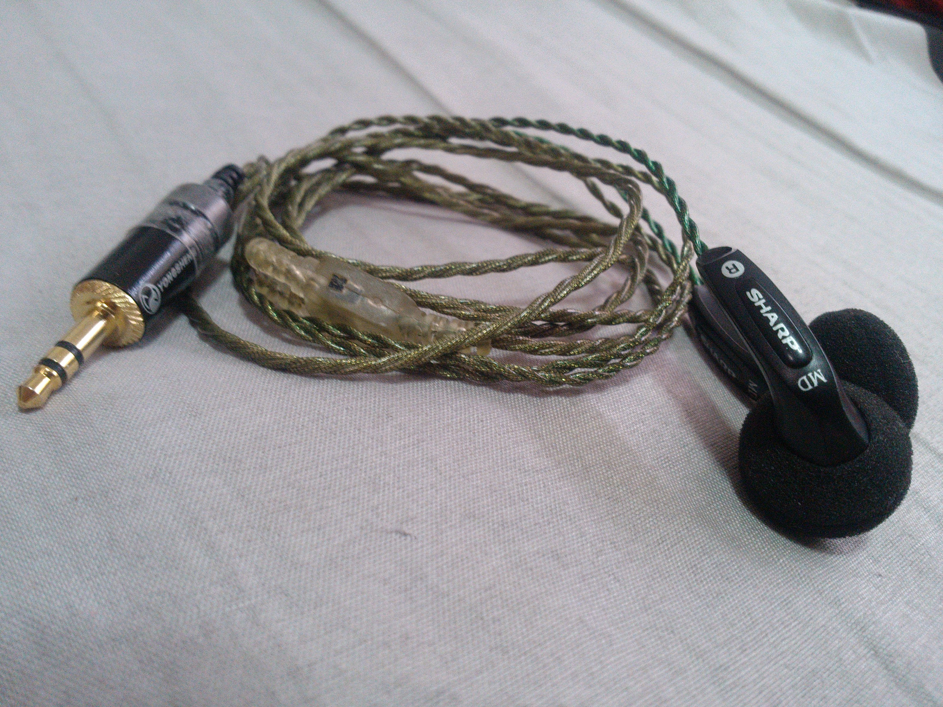 5.Earbud Sharp MD mod นึกอยากลองเอาสายมรกต(สายเขียวนั่นเอง)ของ JH และหัวแจ็คYONGSHENG ให้ช่างชัยใส่ แนวเสียงผมบอกไม่ถูก... ว่าจะเอาไปเปลี่ยนเป็นหัวเงินNeutrik