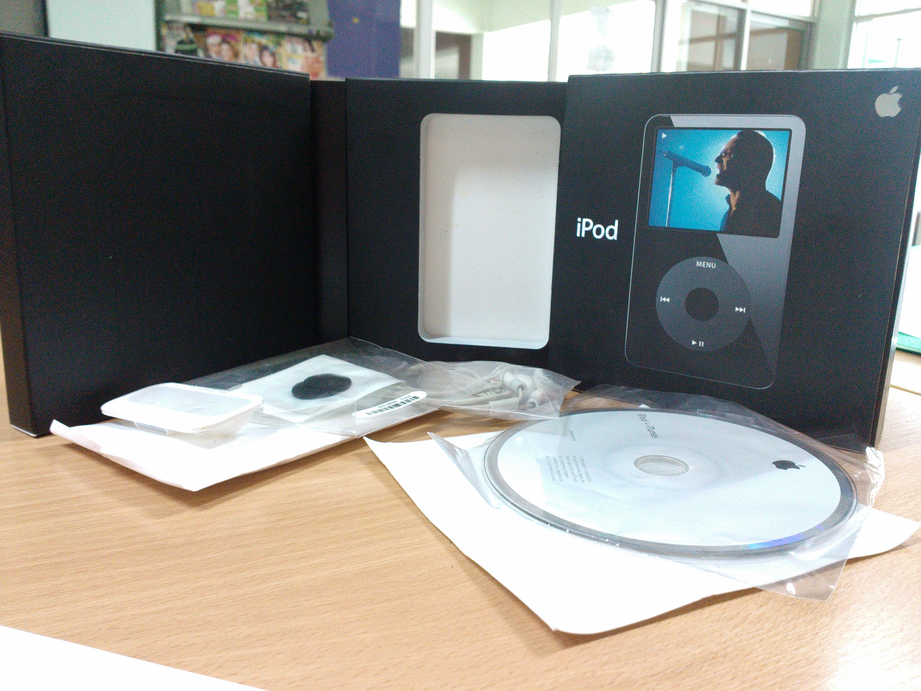 1.iPod Video Gen 5.5 30 GB สีดำ สภาพดี มีรอยขนเเมวด้านหน้าเป็นธรรมดา ไม่มีรอยบุบ ฝาหลังติดกันรอยด้านตั้งเเต่ได้มา Serial Numberตรงฝาหลัง ปุ่มปกติ รูเสียบทุกช่องปกติ ผลแสกนHDDเขียวล้วน แบตฯเพิ่งเปลี่ยนเมื่อวาน ร้านฮวก แบงค์ โดนไป 600.- แบตฯก้อนเก่าเล่นได้ 6-8 ชม.(เปิดทิ้งไว้ กดบ้างเล็กน้อย) ก้อนใหม่ไม่ต่ำกว่า 10 ชม.(ยังไม่ลองจนแบตฯหมด) มีcaseหนังสภาพใช้งานมานาน ใช้งานได้ปกติ แต่หน้าตาเริ่มแก่