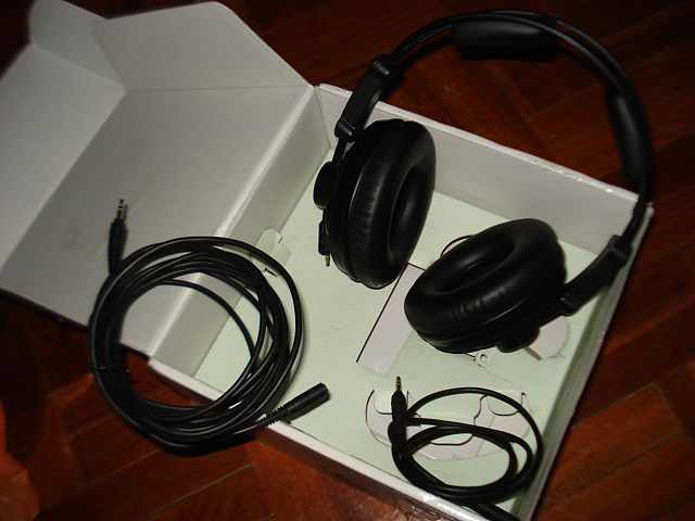 จึงขออนุญาตปล่อยในราคา 750 บาทรวมค่าส่ง อุปกรณ์ที่แถมมากับตัวหูฟัง ประกอบด้วย กล่อง สายหูฟังstock 3m และ1m และก็หัวแปลง mini ไปเปน 1/4 สภาพหนังหุ้ม earpad เริ่มแตก