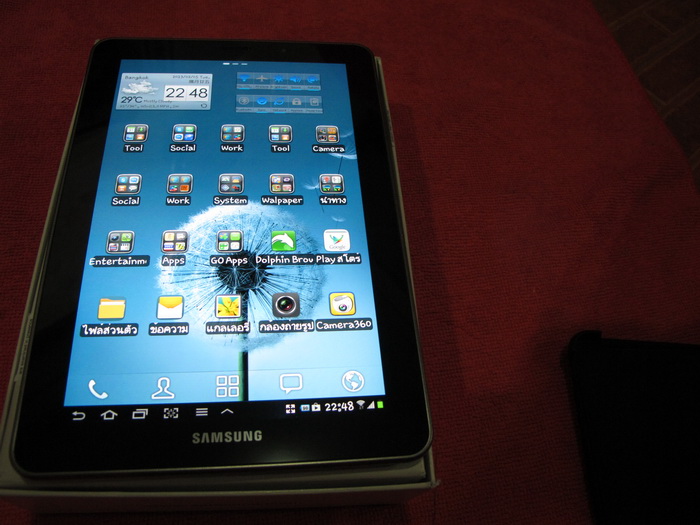 อุปกรณ์ Samsung Galaxey Tab 7.7 เครื่องศูนย์ไทย สีดำ ติดกันรอยด้านหน้าแล้ว อุปกรณ์ของแท้ครบยกกล่อง