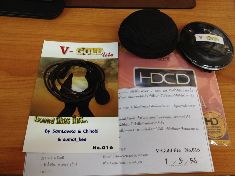 ขายหูฟัง V-GOLD LITE ไปรับมาจากคุณ auan-aa เมื่อไม่นานครับ สภาพดีมากๆ No.016 หูฟังตัวนี้ทำเมื่อ 1/3/56 รับมา 1100บาท มาสภาพไหน ไปสภาพนั้น ครับ