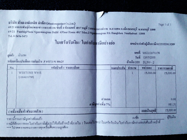 ซื้อจากร้านมั่นคง ใบเสร็จพร้อม ( ซื้อวันที่ 20/7/55 ) หมดประกัน 20/07/56