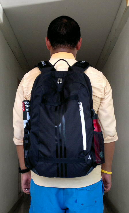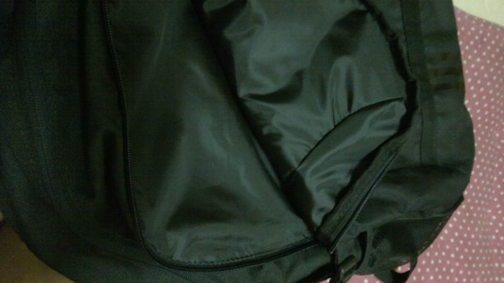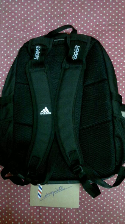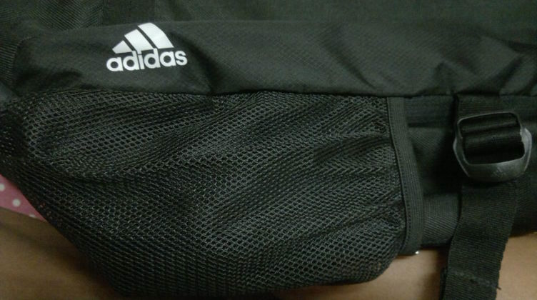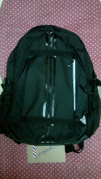 รายการแรก เป้สะพายหลัง adidas สีดำครับ ใบใหญ่ มีช่องใส่ของสามช่อง ด้านข้างมีตาข่ายใส่ขวดน้ำ ที่สายสะพายเป็นระบบโช๊คช่วยลดแรงเวลาสะพาย ด้านหลังเป็นผ้าแบบ climacool ครับ สบายไม่อับ ที่ซิปหน้าเป็นแถบสะท้อนแสงด้วยนะครับ กันน้ำได้นิดหน่อย