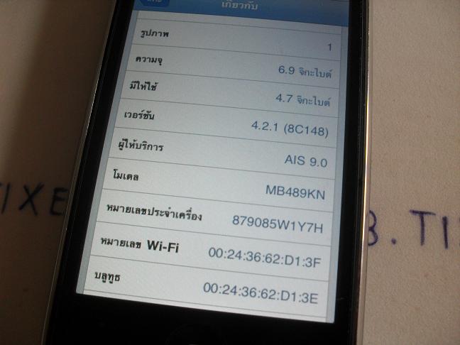 iphone 3G 8GB สภาพเครื่องใหม่มาก แต่ใส่ซิมแล้วขึ้นไม่มีบริการครับน่าจะเป็นเครื่องนอกครับ โมเดลKN เครื่องน่าจะเดิมๆเลยดูยังเวอร์ชั่นเก่าอยู่เลย ขายให้เอาไปลองทำดูน่ะครับหรือคิดซะว่ามันคือ ipod touch ขาย1800บาท มีแต่เครื่องน่ะครับ