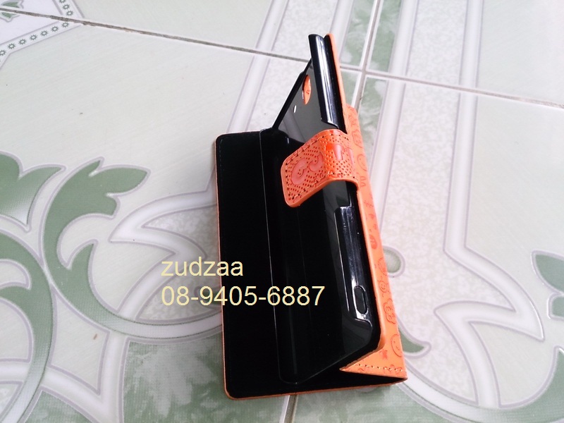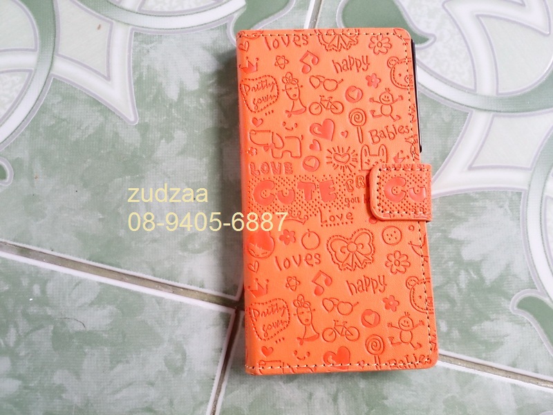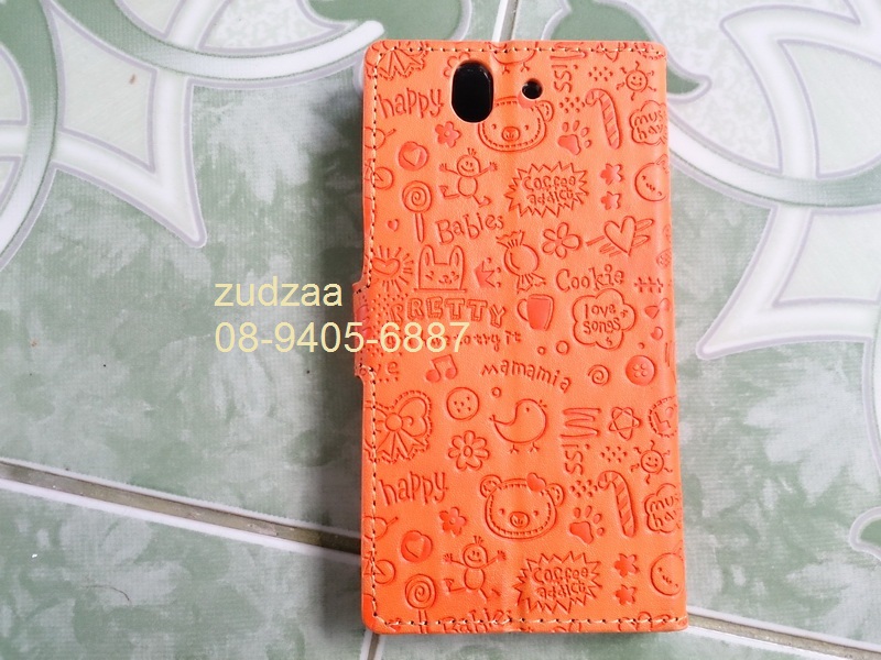 2. เคส Sony Xperia Z Cartoon Lovely Leather Flip Case Cover สีส้ม