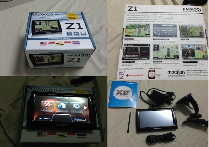 อุปกรณ์ : GPS PAPAGO Z1 หน้าจอ 5" สามารถเพิ่ม Micro sd ได้ครับ มีขายึดกระจกและแผ่นรองซิลิโคน พร้อมกล่องคู่มืออุปกรณ์ครบ