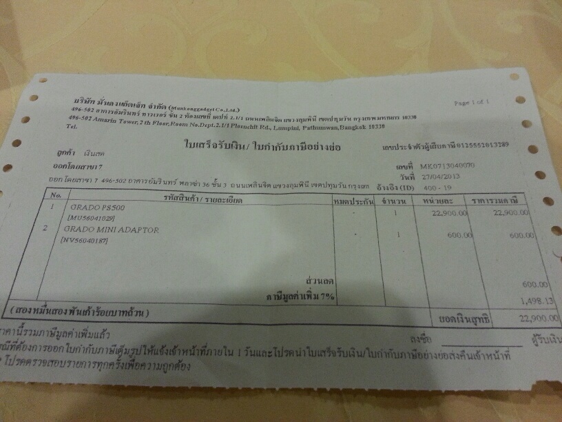 Grado PS500 รับมาจากเพื่อนสมาชิกท่านหนึ่ง สภาพใหม่มากๆ แทบไม่มีตำหนิ ของซื้อจากร้านเฮียเมื่อเดือนเมษายน 2556 จะปล่อยในราคา 15,000 บาท (กล่องใบครบ) รวมกระเป๋า VAudio ด้วย