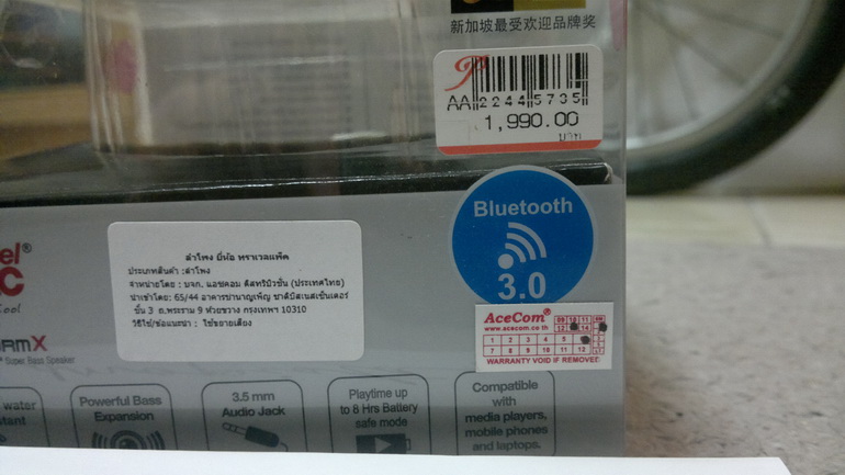 ๓.ลำโพง บลูทูธ ยี่ห้อ Travel PAC รุ่น e-stromX จากสยามพาราก้อน ซื้อมาประมาณมิถุนา 56 ใช้บ้าง ส่วนใหญ่ไม่ได้ใช้ วัสดุเป็นสแตนเลส กันละอองน้ำได้ เพิ่มลดเสียง เปลี่ยนเพลงได้ที่ตัวลำโพง มาพร้อมสายชาร์ตและสายมินิทูมินิ เสียงดังมากกก มิติพอเหมาะตามประสาลำโพงลูกเดียว เสียงเบสโต๊ะสะเทือน ไม่ได้พูดเล่น โต๊ะสะเทือนจริงๆครับ