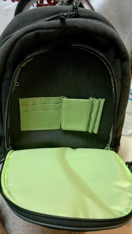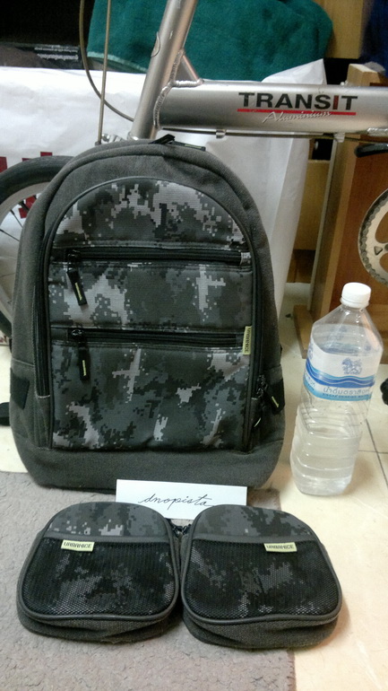 ๔.กระเป๋าสะพายยี่ห้อ Urbanice แบรนด์คนไทยขายใน Loft สภาพใหม่กริ๊บ ขนาดเทียบกับขวดน้ำได้เลย จุได้เยอะ งานเย็บหนาแน่น มีช่องต่างๆตามภาพ และมีกระเป๋าใบเล็กให้อีก 2 ใบ สามารถยึดด้านข้างกระเป๋าได้