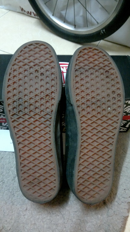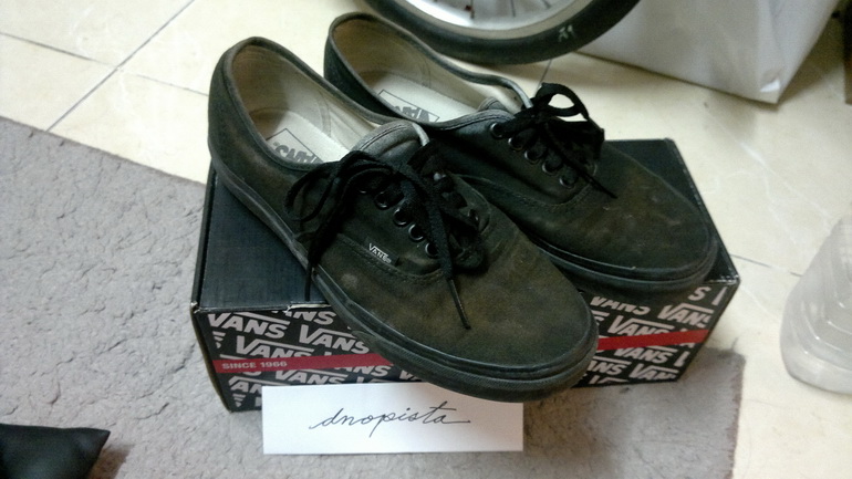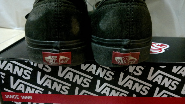 ๕.รองเท้า vans รุ่น authentic สีดำ เบอร์ 9 US พื้นสึกเล็กน้อยมากๆตามภาพ เพราะใช้น้อยมาก แต่ทำไมผ้ามันเป็นออกสีแดงๆแบบนั้นไม่เข้าใจเหมือนกันครับ คราบขาวๆที่เห็นคือคราบผงซักฟอกครับ ซื้อจาก shop ที่เซ็นปิ่น