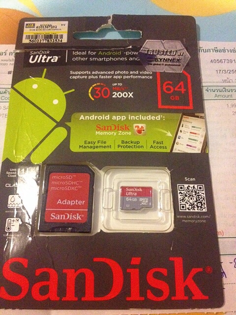 1. SanDisk MicroSD 64GB Class 10 ประกัน SYNNEX ซื้อจาก J.I.B วันที่ 17/3/56 ซื้อมา 1990 บาท MEM ปกติใช้กับ AK100จึงแปลงเป็น FAT32 เรียบร้อยแล้ว แถมเพลงเพราะ ๆ เต็มความจุ (หลายถ้าจะเอา 24 bit แทนลงให้ได้ แต่แจ้งล่วงหน้าซัก 1 วันนะ) เสนอขาย 1690 บาท