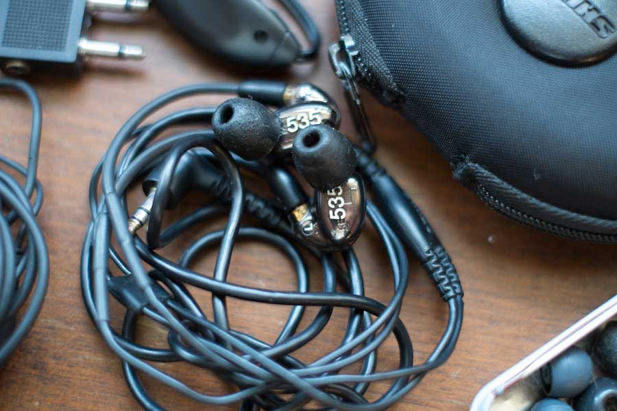 1. หูฟัง Shure 535 สีน้ำตาลทอง พร้อมสาย ธรรมดา และสาย Small Talk CBL-M-K อีกเส้น