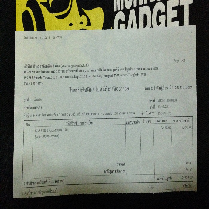ขออณุญาติขาย Bose MiE 2i ซื้อมาวันที่ 13 มกราคม 57