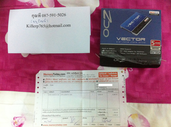 2. เพิ่ม ฮาร์ดดิส SSD Vector150 ความจุ 128GB 1 ลูก โคลน windows8 64bit ของแท้ ประกัน 5 ปี ฮาร์ดดิสจาก memorytoday พร้อมใบเสร็จเช่นกันคร้าบ