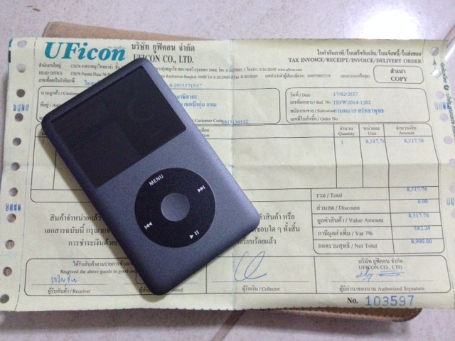 ขออนุญาตเฮียขาย ipod classic สีดำ 160gb ครบกล่อง ใบเสร็จร้านUficon ลงวันที่ 17/02/2557
