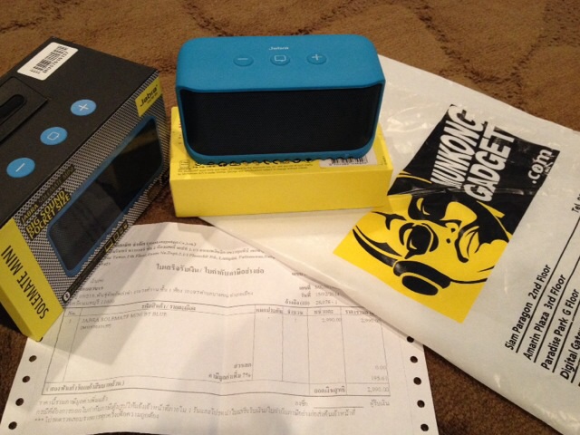 ขายลำโพงบลูทูธ Jabra solemate mini สีฟ้า สภาพสวย ขอลงขายเพราะไม่ค่อยได้ใช้ เล่นแต่เครื่องเสียงบ้าน ซื้อจากร้านเฮียมั่น มีใบเสร็จเรียบร้อย ลำโพงอยู่ในสภาพดี ขอขายที่ราคา 1500 บาท สนใจติดต่อที่เบอร์โทร 0891146289 ครับ