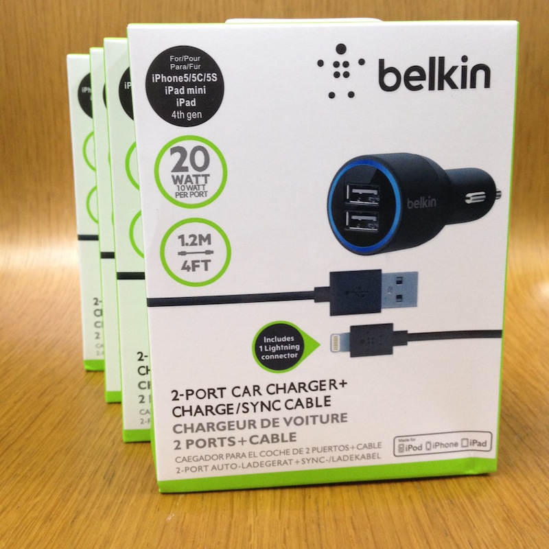 ที่ชาร์จในรถ Belkin (20 Watt) มาพร้อมกับสาย Lightning สำหรับ iPhone 5s/5C/5, iPad 4, iPad mini, iPod touch 5, ipod nano 7
