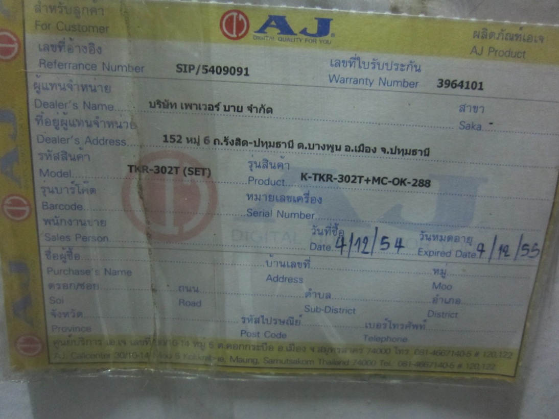 ประกันพึ่งหมดไปตอนต้นเดือน ธ.ค. แต่ใช้จริงๆแค่ 2-3 ครั้งครับ อุปกรณ์ยังครบ ไมค์แกะใช้แค่ตัวเดียว (พลาสติกหน้าจอยังไม่ได้แกะเลย) เลยขอปล่อยให้คนที่อยากเอาไปลงคาราโอเกะเพิ่มเล่นเองครับ (หรือจะลงไฟล์ midi เองก็ได้ครับไปศึกษาเอานะ)