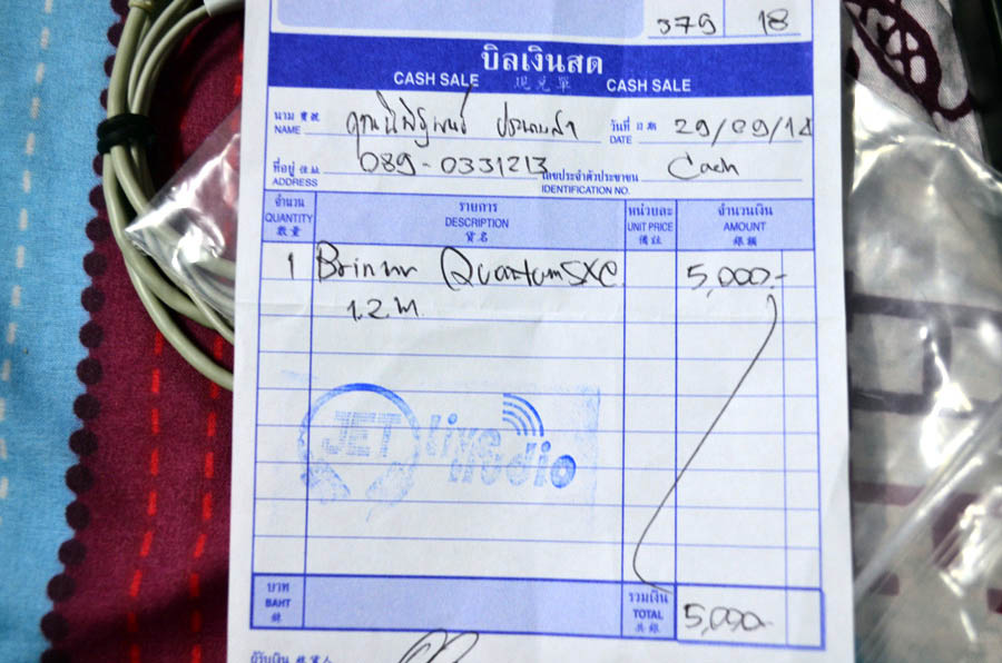 - สาย Brimar Quantum SXC สภาพใหม่ อายุ 3 สัปดาห์ ประกันร้าน jet เหลือเกือบ 2 ปี เบิร์นประมาณ 50 ชั่วโมง รีวิวสายนี้จะทำให้เสียงดีขึ้นทุกย่าน 1 สเตป แต่เสียงโดยรวมยังคล้ายๆเดิม จะเน้นด้าน เสียงเบสกับเสียงกลางให้หนาขึ้น แต่เวทียังรู้สึกไม่กว้างขึ้นเหมือนเดิม