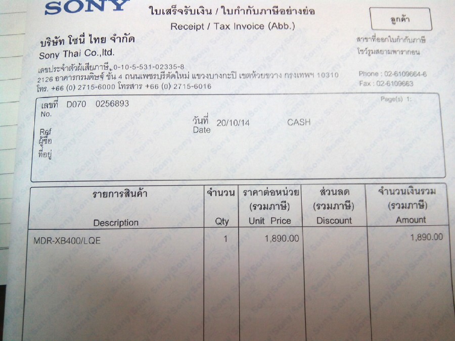 ซื้อที่ศูนย์โซนี่ พารากอน วันที่ 20/10/2014 (ถึงวันนี้ ก็12วัน)