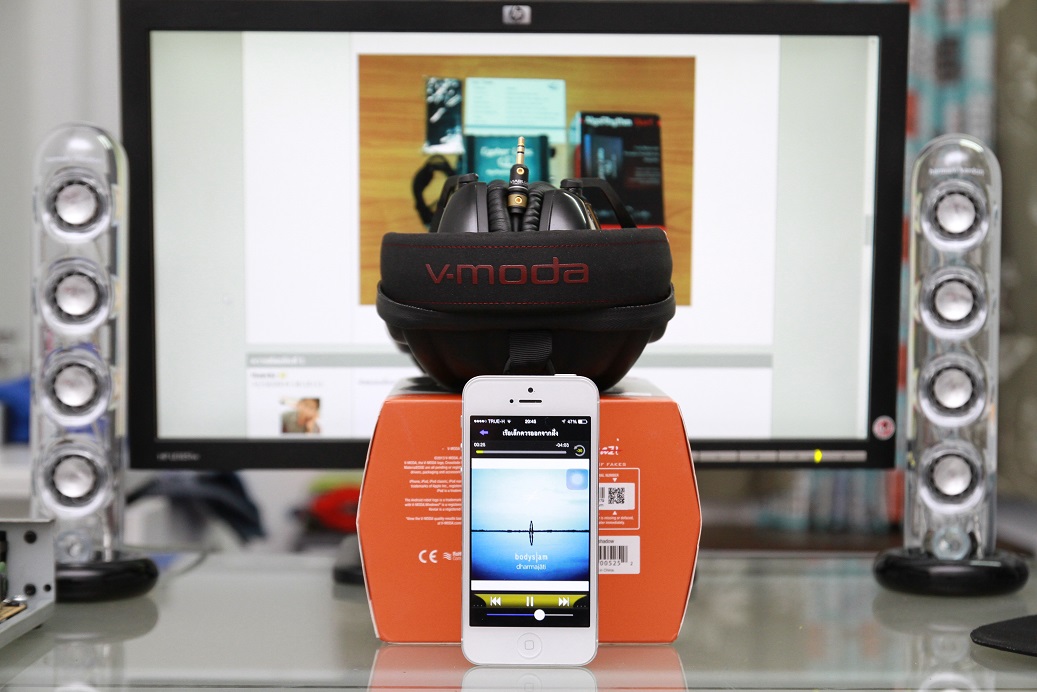 "V-MODA M100 ครบกล่อง ซื้อมาไม่เกิน2เดือน มีใบเสร็จ โมสายViablue EPC-4พร้อมแจ๊ค+ iPhone5 สีขาว"