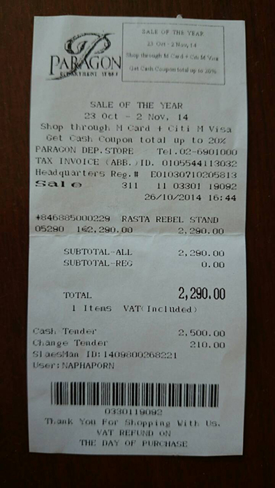 สภาพใหม่มากๆ ไร้ริ้วรอย เพิ่งซื้อมาเมื่อวันที่ 26 ตุลาคม 2557 จากห้างพาราก้อน
